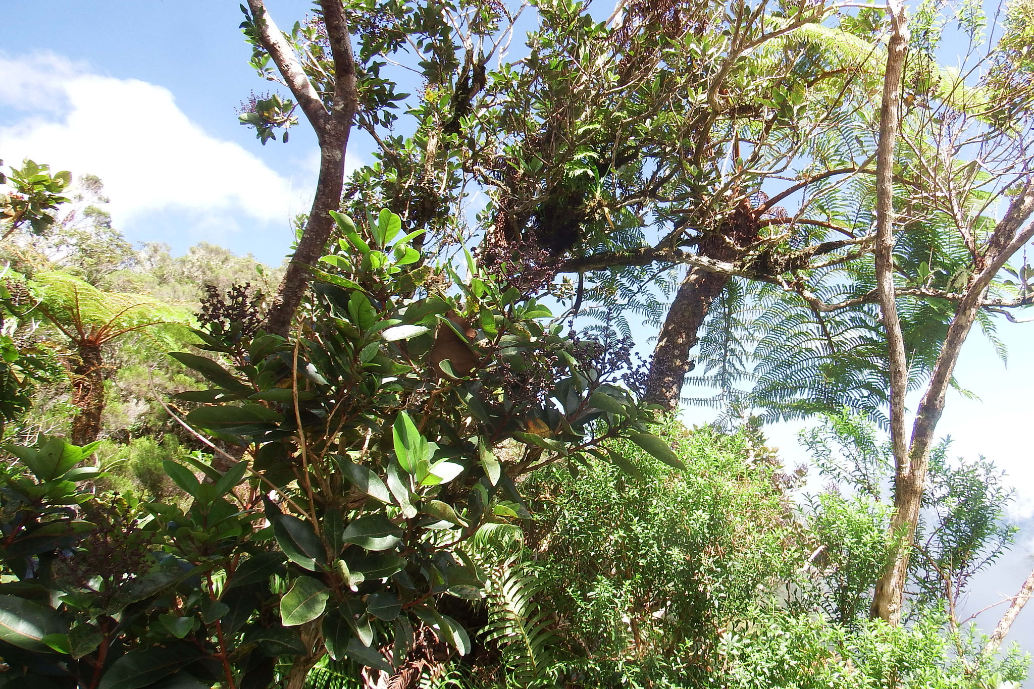 Une balade au cœur de la forêt de Bélouve, avec de nombreuses plantes indigènes, voire endémiques comme ses orchidées qui se cachent au sol ou sur les branches de Tamarins, eux aussi endémiques de la Réunion.